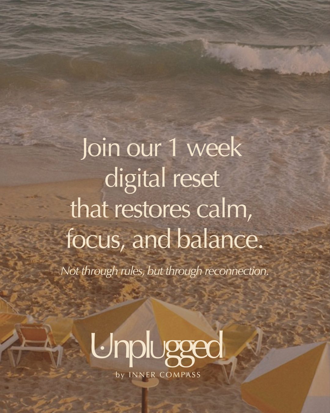 Unplugged is a one-week guided digital reset to restore presence, balance, and embodied living.